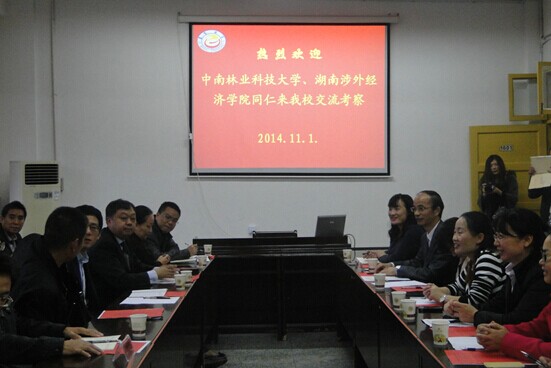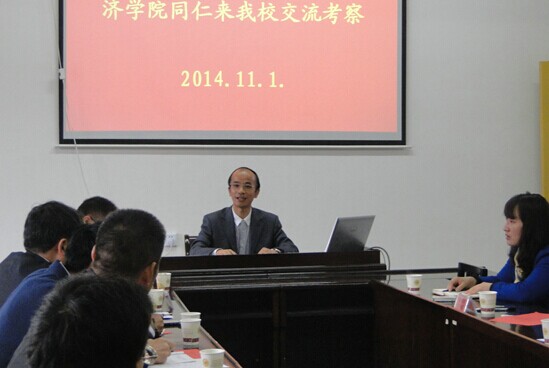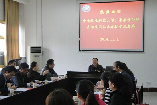 本网讯(娟萍) 11月1日,湖南涉外经济学院思想政治教育理论教学部李故新主任一行13人、中南林业大学思想政治理论课教学部胡美灵主任一行5人来公司考察交流。公司领导廖胜刚、彭兴富、肖映胜、徐峙、孙忠良及全体教研室主任;学校人才招聘处钟洪波副处长、心理咨询中心主任孟娟教授在学院会议室热情接待了同行客人并举行了交流座谈会。会议由公司经理廖胜刚教授主持。