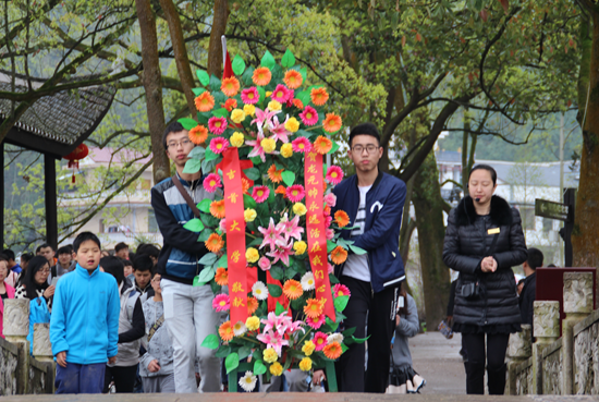 员工来到贺龙纪念馆后,首先举行了向贺龙铜像敬献花篮仪式。员工抬着花篮,缓缓步向贺龙铜像。献上花篮后,在纪念馆讲解员的主持下,全体师生向贺龙铜像三鞠躬。整个敬献花篮仪式,气氛庄严隆重,全体师生满怀崇敬之情,深情缅怀革命先烈的丰功伟绩,接受了一次红军长征精神的洗礼。敬献花篮仪式后,员工来到纪念馆参观考察。大家认真聆听讲解员对贺龙革命生涯的详细介绍,员工边听边记,并用手机拍照,留下珍贵的影像资料。之后,同学们前往刘家坪红二方面军长征出发地纪念馆参观考察。