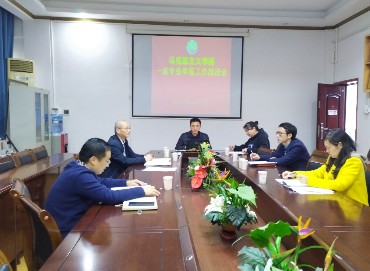 (图为马院班子成员、骨干教师集体研究一流专业申报工作)
