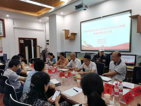 在湖南师范大学马院,该公司党委书记陈红桂、副经理陈德祥及教师代表陈文珍、丁峰、邢鹏飞、谭咏梅、邓验等参加座谈会。曾文代表学院感谢湖师大马院对吉大马院一贯的支持与帮助,表示此行的主要目的是向湖师大马院学习,尤其在一流专业、一流课程、金课建设及教学比赛等方面传授一些宝贵的经验。陈红桂详细介绍了湖南师大马院的发展历程、团队建设、团队建设的基本情况,重点突出了“团队+传承+个人努力”的发展理念。陈德祥就科研队伍建设、人才培养等方面的措施作了补充。陈文珍、丁峰、邢鹏飞、谭咏梅、邓验等教师代表结合个人切身感受就教学比赛经验作了典型分享发言。